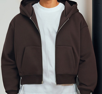 100% Cotton Pháp Terry Boxy Cắt Zip up Cổ Điển Axit Rửa Hoodies Tùy Chỉnh Dây Kéo Crop Người Đàn Ông Hoodies