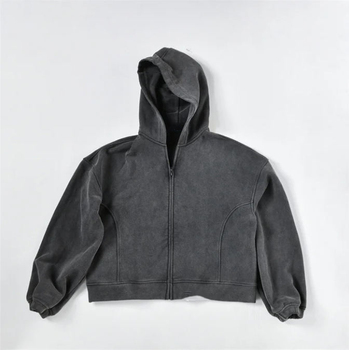 100% Cotton Pháp Terry Boxy Cắt Zip up Cổ Điển Axit Rửa Hoodies Tùy Chỉnh Dây Kéo Crop Người Đàn Ông Hoodies